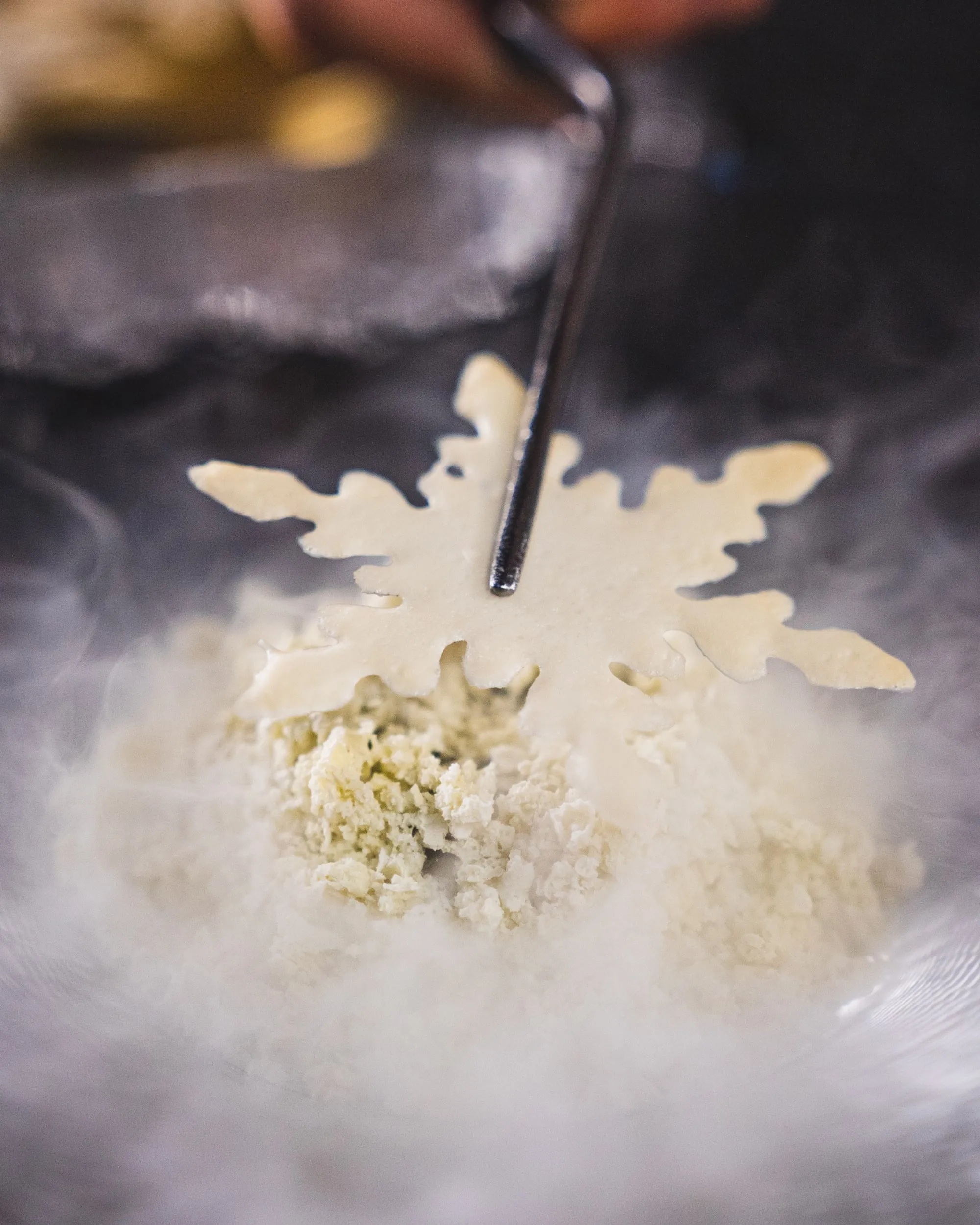 A refined winter treat featuring coconut mousse, with a vibrant strawberry-raspberry core, Coconut Ice cream, lychee gel, and a veil of coconut nitro snow